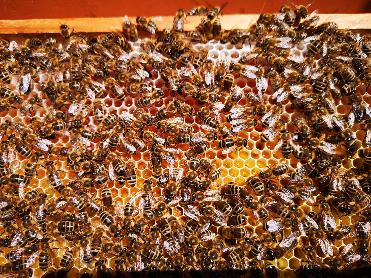 Das Innenleben eines Bienenstockes über die Monate ist bewundernswert. Von Februar (Haselblüte) bis Mitte Juni wird der gesamte eingetragene Bollen und Nektar zur Brutpflege verwendet.